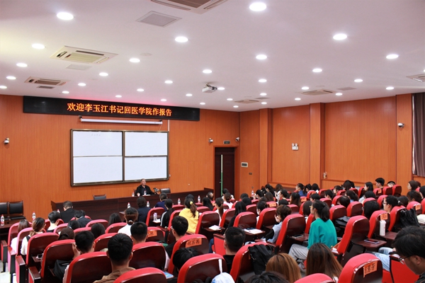 作为在卫校时期工作过的老同志,师生们用最热烈的掌声欢迎李玉江书记重返故里。李玉江书记用朴实的语言、生动的故事讲述了自己的人生经历和工作体会,尤其结合自己担任驻村第一书记的12年间,如何让一个吃不上水、道路泥泞的贫困村蜕变成路面宽阔平整、庄稼长势正好、拥有三个村民活动广场、两个图书馆、打出地下300米深水井的祥和宜居的美丽乡村。十余年他同贫困群众想在一起、过在一起、干在一起,把自己最好的年华无私献给了乡村脱贫攻坚事业,用实际行动生动诠释了新时代共产党员的责任和担当,树立了驻村干部的良好形象。他对党和事业的忠诚,坚定的理想信念,扎实的工作作风和无私奉献精神,深深的感染着在场的每一个师生。