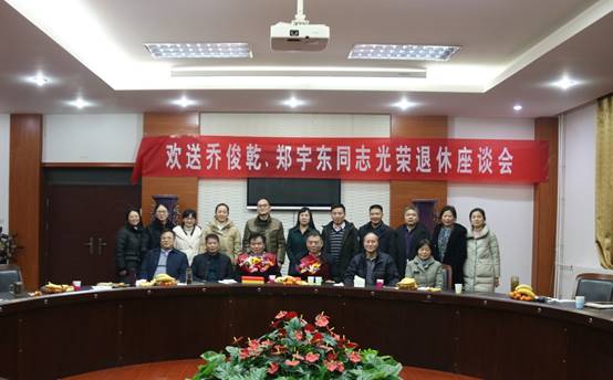 2022年1月4日下午,太阳成tyc7111cc官网分工会组织教师代表在二楼会议室为乔俊乾和郑宇东老师举行了荣休教师座谈会。公司领导班子、部分教师代表汇聚一堂,小会议室里充满了浓浓的惜别之情。