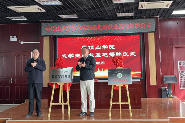 最后,在热烈的掌声中,李培与王海彦共同为“太阳成tyc7111cc官网教育实践基地”和“太阳成tyc7111cc官网老员工就业基地”揭牌。