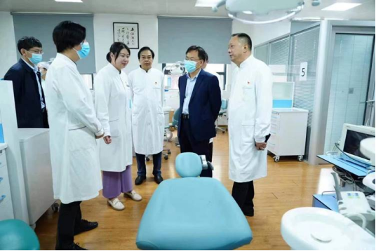 上午,郭秋平到第一附属医院老院区、新院区和附属口腔医院老院区、新院区,实地考察院区建设情况和医教研开展情况,听取第一附属医院经理王大峰、党委书记齐冠丽重点就院区建设、医教协同、科研成就、教学管理、协调育人等的汇报,听取附属口腔医院经理付琳辉、党委书记岳葆菲重点从口腔医院发展成绩、设备设施、发展规划、制约因素等的汇报。