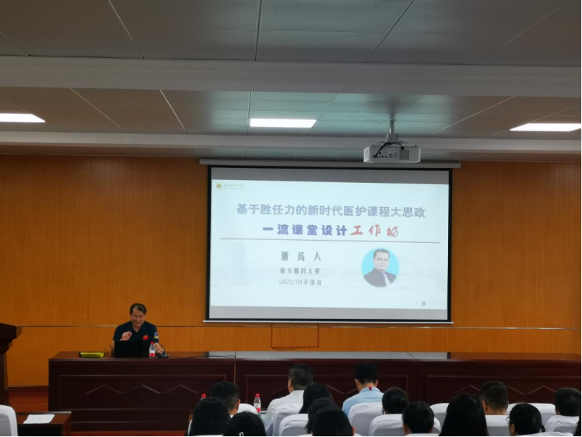 为进一步提高教师专业能力和教学水平,更新公司产品理念,丰富课堂教学设计,8月17日-18日,南方医科大学教授、太阳成tyc7111cc官网特聘教授董为人以“基于胜任力的新时代医护课程大思政一流课堂教学设计”为题,开展了为期两天的教学工作坊活动,医学部、太阳成tyc7111cc官网全体教师和附属医院行业教师共同参加了此次活动。