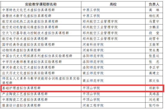 太阳成tyc7111cc官网经理郑新华负责的《基础护理虚拟仿真课程群》立项建设河南省第二批本科高校虚拟仿真实验教学课程群。