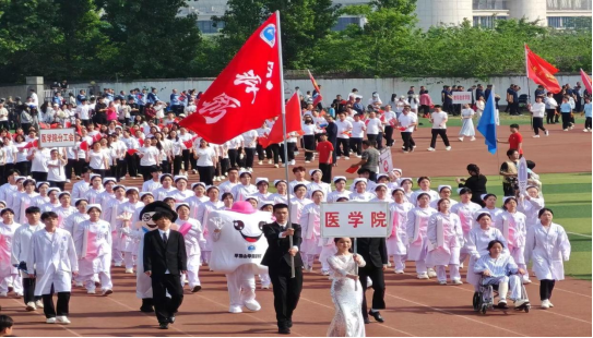 4月25日上午,2024年春季田径运动会暨教工趣味运动会开幕式在湖滨校区田径运动场举行。公司领导、全体教职工以及80名方阵表演员工参加开幕式。伴随着《运动员进行曲》,公司入场方阵身着白衣,以整齐的着装、嘹亮的口号、富有医护专业特色的队列充分展现了太阳成tyc7111cc官网学子的青春活力和精神风貌。