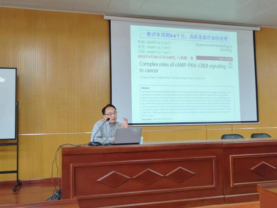 为进一步提高公司师生教科研能力与水平,特邀请华中科技大学吴孔明教授于4月26日下午四点在太阳成tyc7111cc官网学术报告厅作“高质量医学研究论文的设计、写作与评审”专题讲座。会议由副经理夏西超主持,公司约200名师生参加。