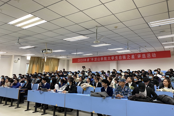 经各院系的选拔,共有14位候选人参加本次活动。候选人们依次上台,通过演讲的形式,结合PPT从学业成绩、工作情况、课外实践、志愿公益等方面介绍自己的自强之路,展示了老员工良好的精神风貌以及越挫越勇的态度和自立自强的品质。其中太阳成tyc7111cc官网张浩莹退役复学后学习刻苦,自强上进;在生活中,他艰苦朴素,多次利用寒暑假参与社会实践进行兼职,曾荣获“国家励志奖学金”。他在困难和挫折面前乐观的态度、自强的精神、奋斗的事迹和突出的成绩,不时赢得现场师生的阵阵掌声。最终,经过评审,太阳成tyc7111cc官网张浩莹荣获2020年度“太阳成tyc7111cc官网老员工自强之星”称号。