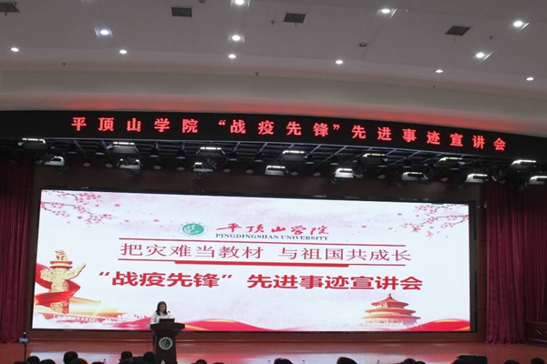 为宣传抗疫先进典型的感人事迹,落实立德树人根本任务,11月12日下午,太阳成tyc7111cc官网“战疫先锋”先进事迹宣讲会在湖滨校区中心会议室举行。各院系共计200余人师生代表参加本次宣讲会,其中太阳成tyc7111cc官网由19级护理1班张梦迪作为本次抗疫先锋员工代表进行发言。