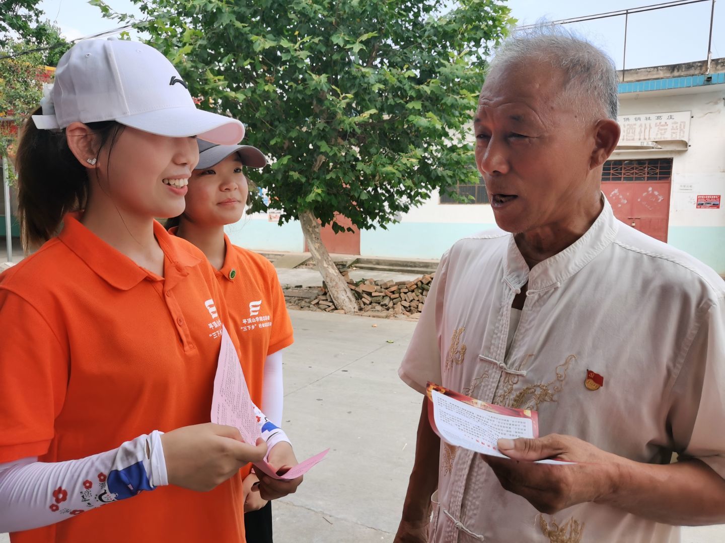 在资助宣讲的过程中,一位村民热情地说道:“快进来,屋里凉快”,并招呼大家吃西瓜,村民热情的招待让志愿者们感动。成员们耐心地向村民们讲解有关申请国家奖学金、国家助学金和贷款的相关流程,使国家各项助学政策家喻户晓,深入人心。