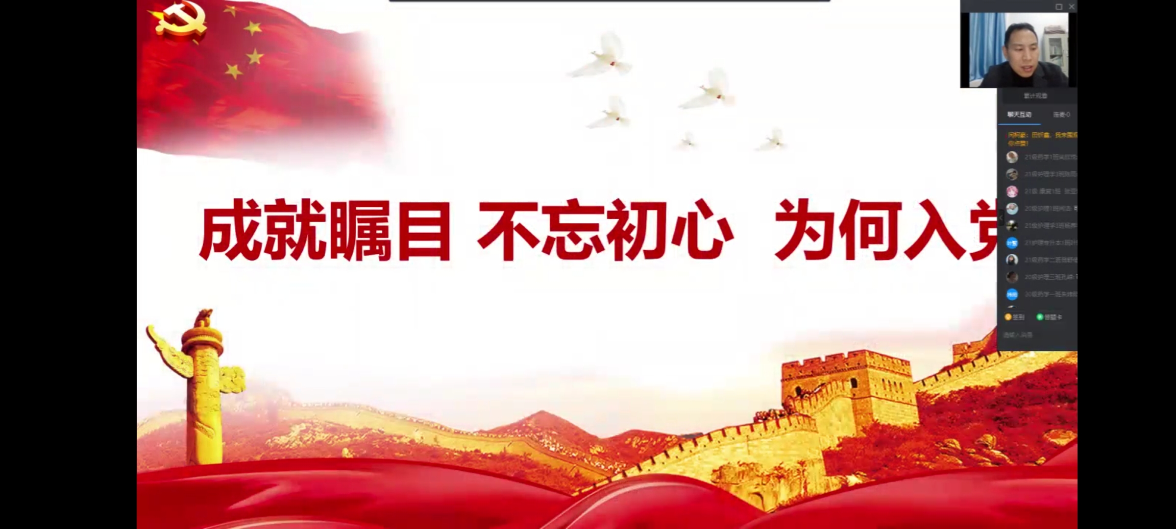 为持续深入推进“学党史、强信念、跟党走”学习教育,进一步深入学习贯彻习近平新时代中国特色社会主义思想,太阳成tyc7111cc官网按照疫情防控要求,于11月18日采取线上钉钉直播的形式,顺利举办了以“百年芳华铭初心,青春笃行强国梦”为主题的太阳成tyc7111cc官网第二十七期团课开班仪式。此次团课开班仪式由团委书记夏乐主讲,团员代表共计303人。