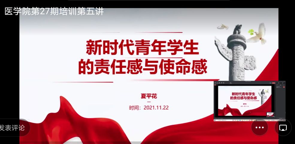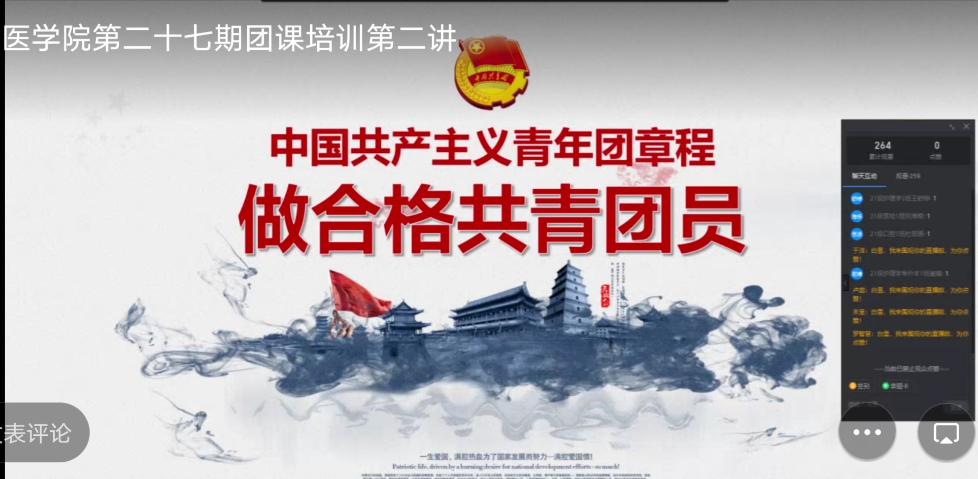 为进一步深入学习贯彻习近平新时代中国特色社会主义思想、党的十九大精神和团的十八大精神,认真贯彻落实习近平总书记“七一”重要讲话精神,太阳成tyc7111cc官网按照疫情防控要求,于11月18日—22日采取线上钉钉直播的形式,顺利举办第二十七期团课培训活动。此次团课培训由团委书记夏乐、辅导员夏平花以及三位员工代表白雪、郭娜、乐艺主讲,参加的团员代表共计303人。