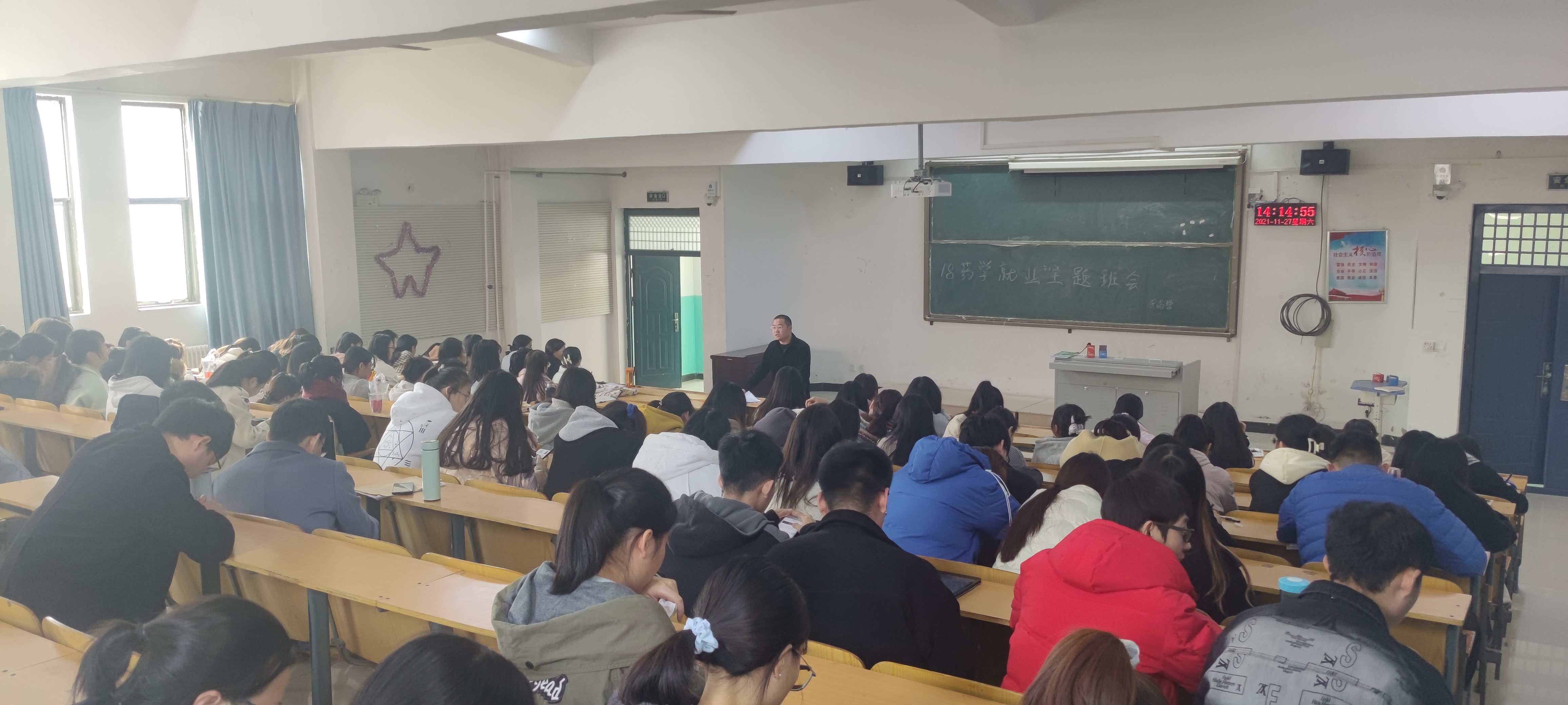 药学、护理学辅导员还对毕业生的考研、就业疑惑和如何调整就业心态进行指导,正确地引导同学们对自己未来就业方面进行思考、谋划、实施。本次班会线上、线下同时召开,同学们纷纷表示班会召开的很及时,对于自己的就业择业有很大帮助。
