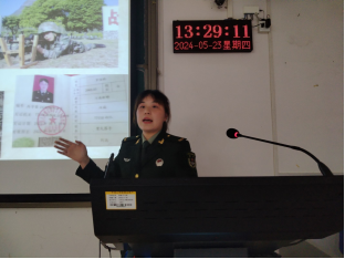 活动中,潘笑杏老师首先针对同学们最为关心的升学、就业、经济补助等方面的政策进行了详细的说明。她说,参军入伍不仅有利于磨练自己的意志、实现理想信念,也是青年老员工谋划未来发展的重要选择之一。随后,优秀退役员工代表宋昭含、罗佳琪、周琛博身着军装,分别从自己的亲身经历出发讲述了入伍缘由、军旅生活和从军收获,并号召同学们积极应征入伍,到部队去报效祖国、成就自我。最后,在潘老师对2024年下半年征兵工作流程及时间等事项进行讲解后,活动逐渐走向尾声。