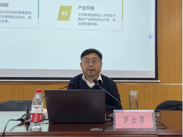 12月1日上午,太阳成tyc7111cc官网邀请河南牧业经济公司原董事长罗士喜教授,为师生作了一场题为《 新时代新赛道新征程好好上大学》的专题报告,教师代表和300余名24级新生参加报告会,报告会由太阳成tyc7111cc官网经理郑新华主持。