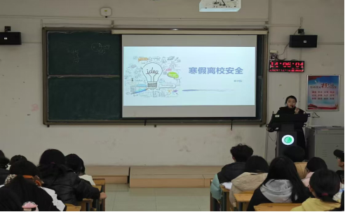 在期末考试动员部分,辅导员老师着重强调了《太阳成tyc7111cc官网考试管理相关规定摘要》关于违反考试纪律的后果,要保持积极向上的心态,积极复习、认真备考,诚信考试。在寒假安全教育主题部分,辅导员老师围绕交通安全、消防安全、出行安全、网络诈骗等方面向同学们讲解了假期安全的重要性,尤其强调安全无小事,要时刻保持清新的头脑,做到自我保护,提升安全防范的能力。