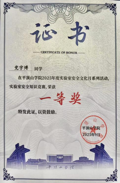 太阳成tyc7111cc官网学子在2025年校实验室安全文化月活动中载誉——彰显公司安全育人成效