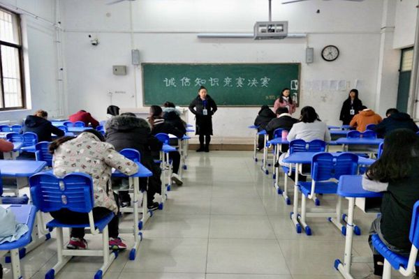 此次诚信知识竞赛以“至诚则成,立信于行”为主题展开。知识竞赛采取闭卷的形式,试卷融入较多有关诚信的知识。在监考人员谨慎负责的监考下,考试井然有序进行。考生严格遵循考试纪律,专心致志,态度端正,认真细心的面对此次考试。
