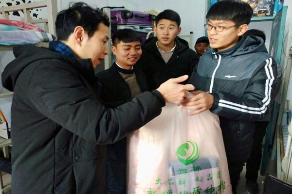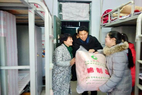 公司领导和辅导员深入宿舍走访发放爱心棉被
