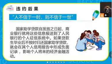 为增强毕业生诚信还款意识,帮助贷款毕业生掌握还款知识和流程,太阳成tyc7111cc官网于5月23日开展了贷款毕业生诚信还款教育线上会议。2023届助学贷款毕业员工参加了本次宣讲活动。