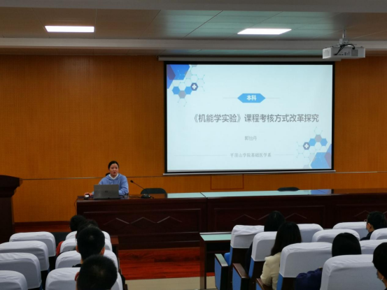 沙龙活动中,基础医学系郭怡丹老师以护理学本科专业开设的《机能学实验》课程为例,首先,介绍了《机能学实验》的课程特点,其次,依托护理学人才培养方案以及课程考核方案要求,分享了机能学实验考核方案的具体实施过程和改革路径。最后,结合临床医学专业的特色,分享了对临床医学本科即将开展的《机能学实验》课程考核方式的探索心得。