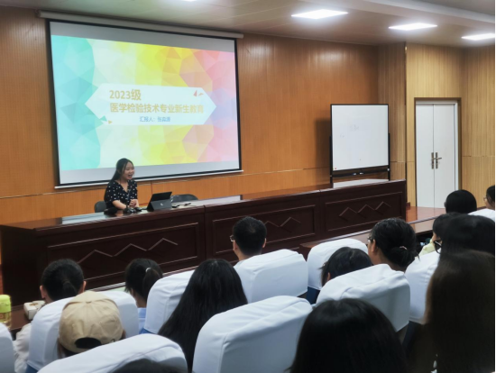 刘强主任对新生们的到来表示热烈的欢迎,对同学们选择医学检验技术专业表示了充分肯定。随后,以时间为基线将医学技术系检验专业的发展历程和近年的具体工作、成绩为同学们做了报告。重点从医学检验技术专业的培养目标、人才培养规格、毕业要求以及专业条件等对专业进行详细讲解,使员工明确自己的人生规划和努力方向。五位专业课老师在简要介绍各自所带课程之后,着重介绍了如下几个方面:张淼源老师以人才培养方案为出发点,介绍了本专业的毕业要求、学位授予条件、及专业课程的相关情况;宋素娜老师从教务的角度,讲解了课程的类别、成绩的构成、获取学分的过程、课程的考核方式,并强调了严肃考风考纪、树立优良学风的重要性;刘姿含老师以“新征程、新挑战”为主题,向同学们讲解了进入大学后如何展开检验专业的学习,介绍了在大学期间,如何积极入党,并对检验专业的就业方向进行了说明;王慧君老师以自身为例子,讲述了就业的另一种途径:考公务员,同时也介绍了如何准备考研的经验,强调了考研的重要性;张淼源老师通过举例,向同学们详细介绍了职业生涯规划的步骤:认识自我、环境分析、职业定位、制定职业发展计划,并鼓励同学们在大学期间做好规划;朱峰老师给同学们讲解大学期间可以考哪些证书,以及这些证书的作用,并帮助同学们认识了常见的电信诈骗手段以及如何防诈骗,保护自己财产安全。最后,刘强主任对本次教育活动进行了总结。他勉励同学们新征程要有新方向,努力学习,超越自我,力争上游,在学习或生活上有任何问题,要及时与老师沟通、寻求帮助,争做新时代好青年,为行业发展贡献自己的力量!
