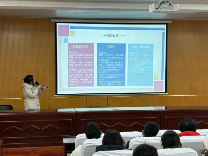 硕士研究生考试一直是临床医学专业员工关注的焦点,也是他们职业生涯规划的必选项。为满足员工们对考研信息的迫切需求,2023年12月14日下午,临床医学系组织召开了“临床医学专业考研经验分享交流会”。本次交流会邀请第一附属医院内分泌科何怡珮主治医师主讲,太阳成tyc7111cc官网副经理夏西超、临床医学系主任吴青坡、教师代表及临床医学专业全体员工参加了此次会议。