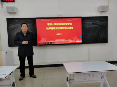 为进一步加强临床医学专业教师队伍建设,提高专业教师课堂教学水平,临床医学系于2024年1月6日在B203教室成功举办了专业教师遴选培训及教学研讨会。会议由太阳成tyc7111cc官网副经理王福安主持,太阳成tyc7111cc官网第一附属医院科教科主任曹飞、太阳成tyc7111cc官网教学督导李钦、刘志平、郭耀玲、周晓欢及太阳成tyc7111cc官网临床医学系主任吴青坡及各部门相关人员共20余人参加了会议。