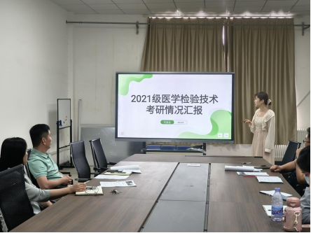 2021级医检专业的员工作为医学技术系首届本科生,今年面临考研的问题。为了解医学技术系考研指导工作进展情况,医学技术系于5月21日下午在基础系示教室召开了考研指导工作汇报会。经理郑新华、副经理白现广、基础医学系副主任刘丽、临床系李娜、及医学技术系全体教师参加了本次汇报会。会议由医学技术系主任刘强主持。