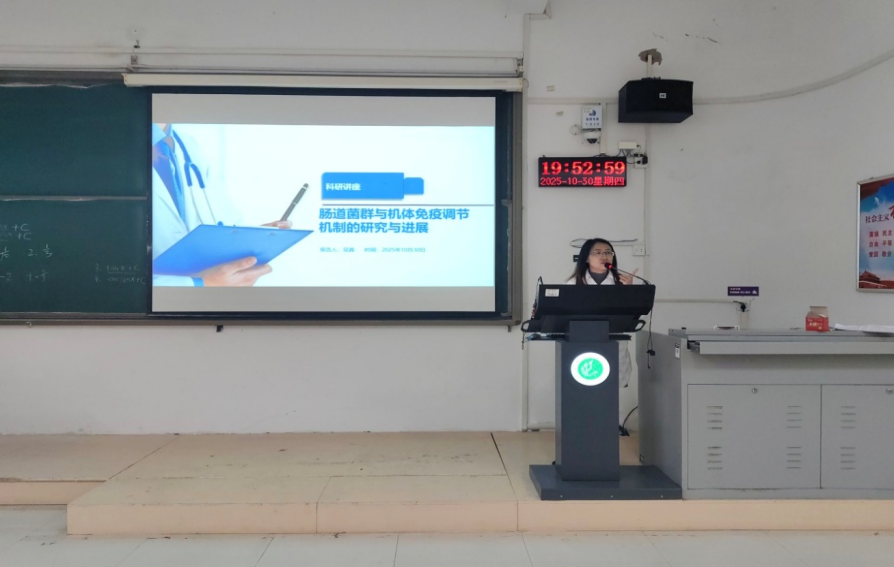 吴茜老师的讲座聚焦“肠道菌群与机体免疫调节机制”这一前沿领域,她通过展示该领域的研究脉络与最新进展,从肠道菌群的构成讲到其对免疫功能的调控作用,激发了医员工们对生命科学前沿方向的探索热情。