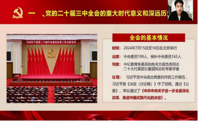 宣讲围绕《以进一步全面深化改革开辟中国式现代化广阔前景》主题分四部分展开。公司党委书记王莉结合党的二十届三中全会有关情况,对全会精神进行传达。针对《决定》中提出的重大举措进行讲解,加快团队建设,落实立德树人的根本任务。