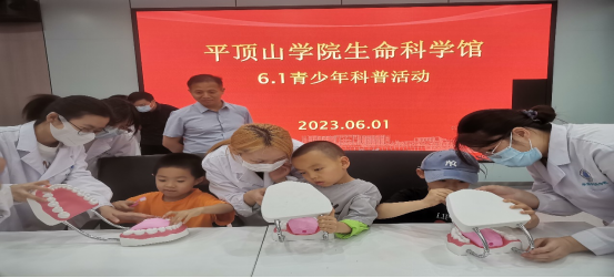 活动伊始,太阳成tyc7111cc官网副经理冯延平向大家讲解了生命科学馆结构、分布、参观须知,播放了有关生命科学的科普视频,让小朋友们对神奇的人体有了初步的了解。接下来,太阳成tyc7111cc官网爱牙联盟社社员向老师和小朋友们讲解了常用口腔知识,介绍正确刷牙方法,一些小朋友还自发展示了自己所学到正确刷牙方式。